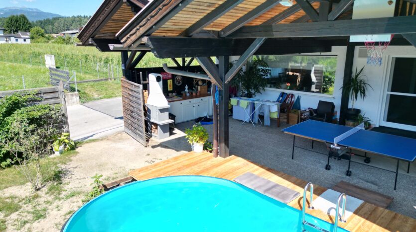 - Garten mit Pool, Grillplatz, überdachter Terrasse, Outdoorküche