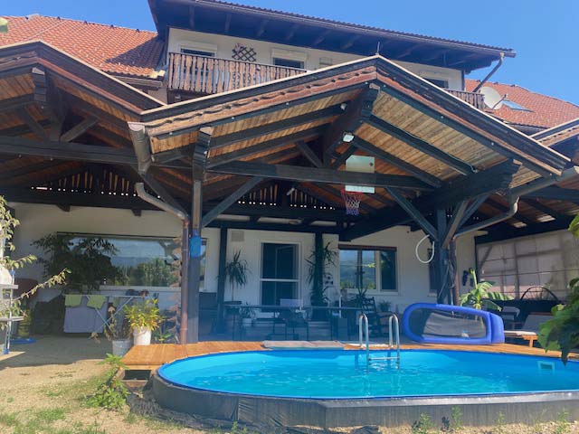 Zum Verkauf steht eine exklusive Wohnung in einer charmanten Liegenschaft mit insgesamt drei Wohneinheiten – gelegen in einer ländlichen Ruhelage mit herrlichem Bergblick und ganztägiger Sonneneinstrahlung. Die Wohnung befindet sich im Erdgeschoss und bietet drei Zimmer, 1 Bad mit Fenster , 2 WCs (1 mit Fenster ), 1 Abstellraum , großes Wohnzimmer mit Zugang zur überdachten Terrasse sowie zum Pool und der Outdoor-Küche und den Garten/Außenbereiche.
