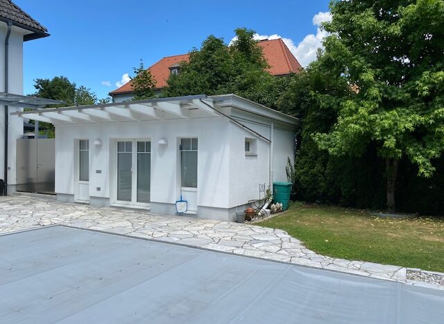 Ausstattung: Pool, Terrasse, Nebengebäude, Sauna, Kunststofffenster, Einbauküche, Keller (Weinkeller), Carport, Parkettboden,